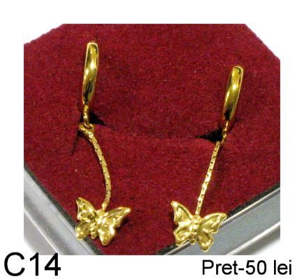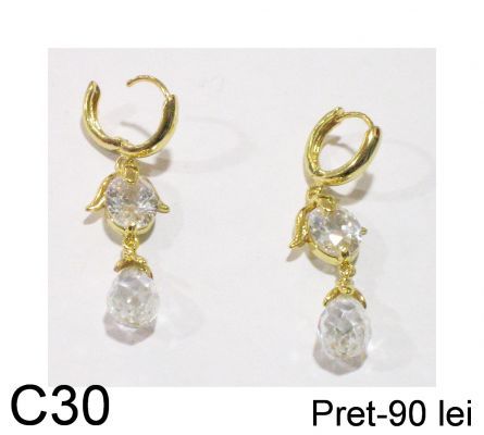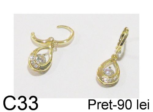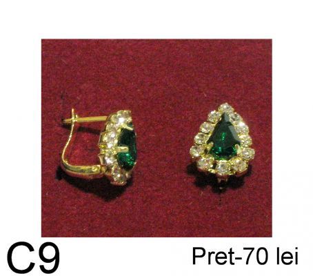 Cercei gf18k cu zirconii albe si zirconiu smarald